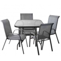 ΣΕΤ ΤΡΑΠΕΖΑΡΙΑ ΜΕΤΑΛΛΙΚΗ 5ΤΜΧ, ΓΚΡΙ, ΤΡΑΠΕΖΙ 110*60*72cm ΜΕ ΤΖΑΜΙ ΑΣΦΑΛΕΙΑΣ, 4 ΚΑΡΕΚΛΕΣ textilene 55*72*91cm